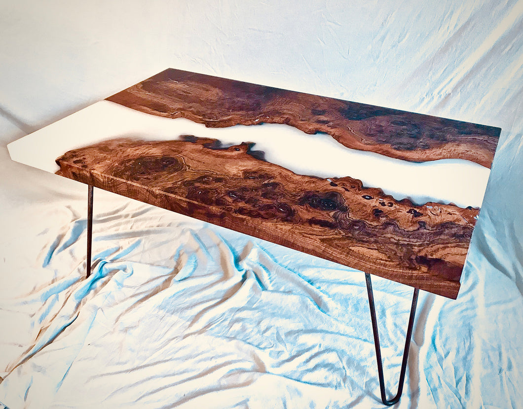 Build a custom "River" table that fits perfectly in your home. With custom sizing available, our clients are able to choose between a variety of wood and river color combos, finishes, and table bases when ordering your River Table. Incorporating multiple innovative designs with every piece of furniture built, The Giving Tree Designs focus attention on creating "One-of-a-kind" pieces that are built to last a lifetime. We know this is a very special purchase and truly enjoy working along with each client when it comes to building a custom piece of furniture fit for your home. That is why we take the experience to the next level by allowing our clients to become part of the process. We encourage our customers to stop by to select the piece of wood for each build or even to take a look around at our available inventory and the design process. If you are not in our area, this is where our online Design Team will help in building the table of your dreams.